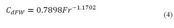 The total inlet flow is calculated by adding together the frontal flow and the lateral flow. Both are modeled using a weir equation. For frontal inlet flow (𝑄𝐹w), Eq. (3) is used in which the coefficient of frontal discharge (𝐶𝑑fw) is computed with Eq. (4):