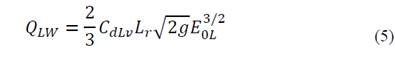 For lateral inlet flow (𝑄Lw ) Eq. (5) is used in which the coefficient of lateral discharge (CdLw ) is computed with Eq. (6):