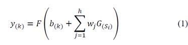 Where F represents the function activation of the output, wj corresponds to the weight of the connections between the hidden layers and bk is the bias or threshold value that is generated during processing. This applies when taking into account the lineal output j with a hidden layer with h nodes and G(Si) as the activation function of the hidden layer (hyperbolic tangent) as defined by eq. (2) [29].