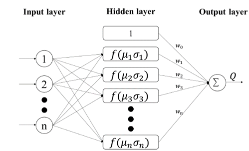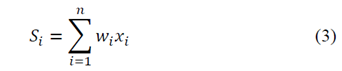 Where Si is the weighted sum of all the input information, xi corresponds to the values inputted into the network and wi is the weight of the connection between the nodes in the input layer and the hidden layer, as is described in eq. (3) [29].