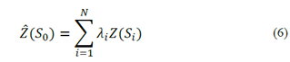 Where: 𝑍(𝑆𝑖) represents the median value in the location 𝑖, 𝜆𝑖 is an unknown weighting of the mean value for the location 𝑖, 𝑆0 corresponds to the location of the prediction and N is the quantity of mean values.