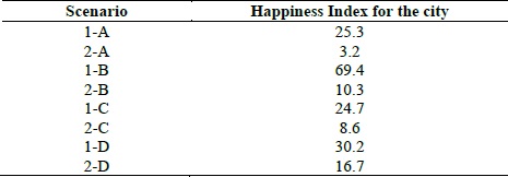 According to Table 1, players that represent community interests always obtain the best results (Case 1). Additionally, when individuals follow their own interest and do not collaborate, the city’s overall Happiness Index is very low (Cases 2-A and 2-C).