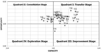Fig. 1 shows the results of this pre-selection and the mapping of 38 technologies, of which the best five, in terms of both opportunity and capacity, were selected. These are prioritized in this study using MCDA.