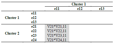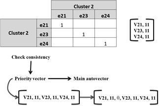 Calculation of priorities between groups of elements (clusters). In an additional influence matrix, which compares the clusters with each other, the experts identified between which clusters there are correlations and then set the priorities between those that are related, as Fig. 7 shows.