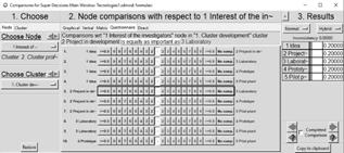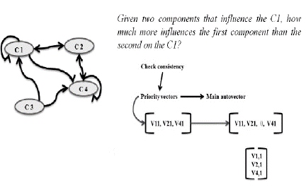 Establishing priorities between interrelated elements. The elements that had a relationship (values of 1) in the influence matrix (Fig. 4) were rated-through pairwise comparisons (Fig. 5) using the traditional Saaty 1-9 verbal scale-by the decision-makers who served as experts. The support software has default forms to perform this rating verbally, numerically and graphically, as shown in Fig. 6.