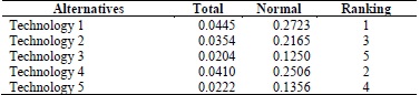 ANP complements the hierarchical analysis and provides an approach to measuring existing influences between elements; namely, it can capture the complexities that a decision problem may present when its elements depend on each other or require by-products of other elements. ANP provides the order in which alternatives should be promoted. However, a technology should not be discarded because it is not in first place; rather, these technologies need to continue their development to be transferred in the near future.