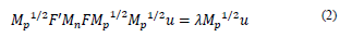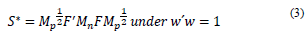 The Lagrangian solution leads to the system of eigenvalues and eigenvectors Su = λu, with S = F´MnFMp and u´MpSu = I = λ, which correspond to the highest eigenvalue.
