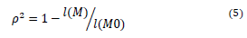 To compare the goodness of fit of the two models, we estimated the statistic ρ2, which relate the model quality to the null model which does not include explanatory variables, using the log-likelihood as shown in equation (5). The value of ρ 2 is between 0 and 1, and while the statistic is bigger, the model has a better fit.