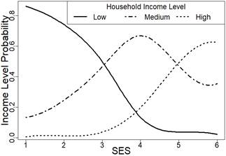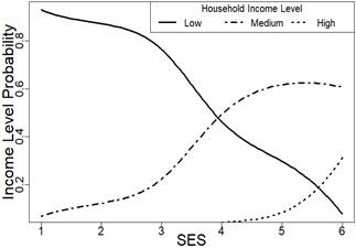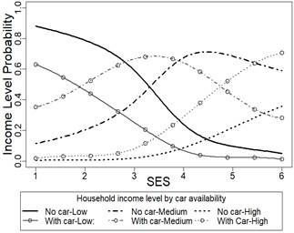 The main conclusion of the research is that there was a positive correlation between SES and household income. However, this correlation depends on specific household characteristics: household size, number of workers, and vehicle availability. Along this line, the probability of having a higher income increased in households with a car and decreased in those with a motorcycle. The correlation between SES and income was not completely clear because the probability of having a certain income level given that SES varies according to these attributes. For this reason, in order to obtain trustworthy results for income distribution given the SES, the inclusion of these characteristics is recommended when using the SES as a proxy variable for income.