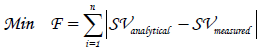(1)SVs is a type of structural response, such as displacements or natural frequencies. This equation considers the total error as the sum of the contribution of each individual error for the SD with the weight factor equal to one for all cases. In addition, Ansys has the ability to transform the problem into a multi-objective one, where an objective is defined for each SV. The main issues related to the definition of the objective function are: