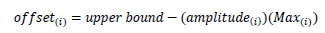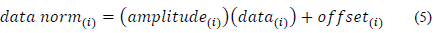 (5)Where data norm(i) refers to the standardized data for each i variable, data(i) is the data entered by the user for each i, and amplitude(i) and offset(i) (compensation) are coefficients calculated for each i by eqs. 6, 7.