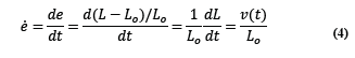 The conventional or engineering strain rate is expressed in terms of engineering strain as the equation 4 [32]