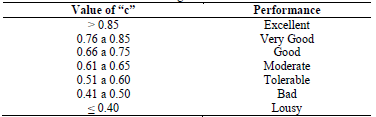 Where R is the correlation coefficient and d the agreement index. For the interpretation of the coefficient of performance values (Table 1), the classification proposed by [21] was used.