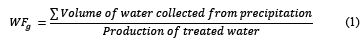 Likewise, the climatic condition of the area affects WFgr, being lower in periods of low precipitation, because of the effect of basin washing that contributes to pollution on the water quality of the supply sources, resulting in a higher concentration of suspended solids in the water [3]. In addition, the water used in washing comes from the same supply source; therefore, it has lower quality than the supply used in conditions of low precipitation. The greater water footprint in high precipitation season is also associated with greater frequency of washing because the water of the supplying source is more polluted (38 to 84% more load of TSS in high precipitations), causing the filters to saturate faster; therefore, the frequency of washing is almost twice that in conditions of low precipitation.