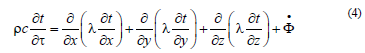In the Cartesian coordinate system, for any point in the heat conduction object (x, y, z), the general form of the 3D unsteady heat conduction differential equation is: