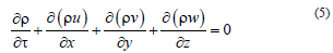where U, P are the column vectors composed of all the nodes in the whole domain and U= [UVW]T.