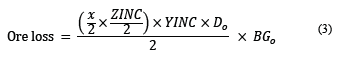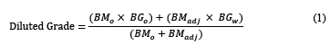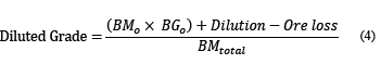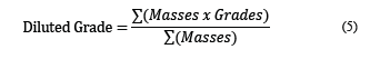The diluted grade is calculated by combining the two types of dilution and ore loss, calculated block-by-block but computed for the whole period, as shown in eq. (5).