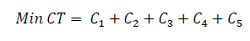 (5)Por último, C5 son los costos asociados a los arcos que unen los centros logísticos principales considerando la posibilidad de sobrecarga