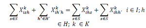 Xkihh’=Cantidad de flujo que se originó en el cliente i que va de h a h'