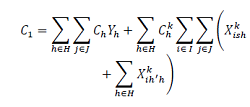 (4)C4 es el costo de movimiento de los centros satélite a los centros logísticos principales, se considera el costo de sobrecarga asociado únicamente entre los centros satélite y los centros logísticos principales.