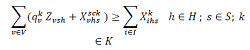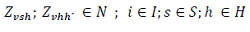 Zvsh= Variable binaria que es 1 si el vehículo v va de s a h 0 en caso contrario