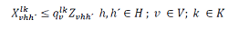 Zvhh´= Variable binaria que es 1 si el vehículo v va de h a h', 0 en caso contrario