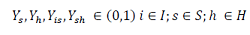Ysh= Variable binaria que es 1 si el satélite s pertenece al h, 0 en caso contrario