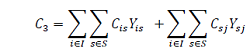 (3)C3 los costos asociados al recorrido desde los clientes iniciales hacia los centros satélite y el costo asociado de los centros satélite a los clientes de envío j.