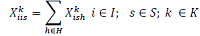 Xkish= Cantidad de flujo que se originó en el cliente i que va de s a h