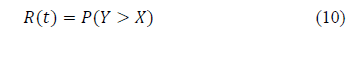 The stress/strength function is the one we must use to determine the reliability of a product which is subjected to variant stress [8]. And since the Weibull/Weibull stress-strength function does not have the closure property [16,17], implying that it has not a close solution for βs ≠βS , then the purpose of this section is to present the formulation of the stress-strength Weibull/Weibull reliability function when (βs =βS ), as well as when (βs ≠βS ). In general, the stress/strength reliability function, as shown in Fig. 1, is given by the probability that the strength (S=Y) will be higher than the applied stress (s=X) R(t)=(P(Y>X)) [13]. Therefore, the inference region represents the corresponding cumulative failure function [18].