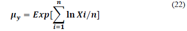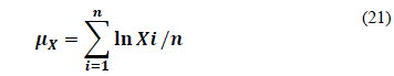 Step 6. Since the average of the log stress data is μXs = 15.75, and the average of the log strength data is μXs =17.3, then from eq.(22) μys =6989990.705 and μyS=32633020,09.