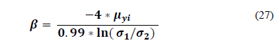 Step 10. Using the maximum and minimum stress σ1 , σ2 and μy values [13], determine the corresponding Weibull shape β value as
