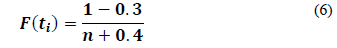 with Yi =ln(-ln(1-F(ti )),b0 =-β ln(η), and xi =ln(ti ). In practice F(ti )in Eq. (4) is estimated by the median rank approach to estimate the corresponding reliability of a data set and is given by [16]: