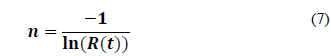 where the estimation of the β and η parameters is performed by using the linear form of eq. (2) as