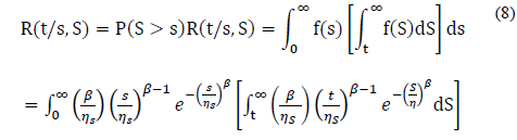 Thus, based on the Weibull distribution defined in Eq. (1), the Weibull/Weibull stress/strength formulation for βs =βS is as follows.
