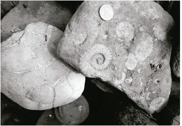 Por otro lado en la zona del estudio, en la parada N° 8 correspondiente a la Finca “Escondida”- Fósiles, se encontraron elementos paleontológicos en la finca y sobre las márgenes de la quebrada Bambucá, lo cual resulta lógico ya que dicha quebrada atraviesa las formaciones Loma gorda y Hondita (K II) que son formaciones sedimentarias en las que se encuentran fósiles de distinto tipo, de esta manera se cree que debido a la erosión normal de la quebrada al pasar por las formaciones, estas rocas sedimentarias carbonatadas y los fósiles asociadas a ellas, fueron transportadas por acción de la corriente hasta llegar al punto de interés N° 8 denominado Finca "Escondida" Fósiles. (ver Fig. 10)