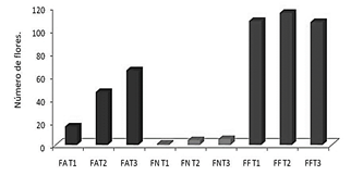 Finalmente, Se observa que durante el mes de noviembre existió una floración muy baja en comparación con el número de entrenudos existentes; mientras que en el mes de febrero ocurrió lo contrario, es decir, una floración mucho mayor al número de entrenudos desarrollados. Se esperaría entonces según la literatura [18], que los niveles de giberelinas endógenos fueron bajos durante el mes de noviembre y aumentaron durante el mes de febrero (Fig. 5).