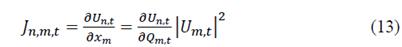 The elements of the matrix Jt of size (NxM) are derivatives of the voltage at load state t in node n respect the susceptance of the capacitor installed in node m.