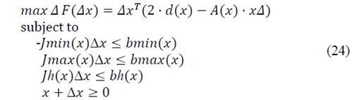 If the vector x represents the sizes of the installed capacitors, a variation Δx that makes that the solution complies with the harmonic distortion bounds must be limited by the linear constraint: