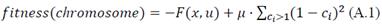 To solve the maximization problem expressed in (10), the genetic algorithm minimizes a fitness function expressed by: