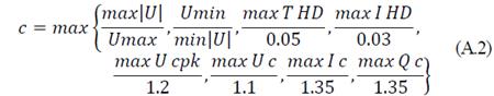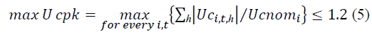 In addition, other constraints are stated to avoid the overstress of the capacitors by complying with recommended bounds by the IEEE Std. 18-2012. This standard state the limits of stress of the capacitors: the maximum peak voltage (Ucpk), the maximum rms voltage (Uc), the maximum current (Ic) and the maximum reactive power (Qc). The maximum of these indices for all capacitors must comply with: