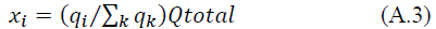The array of weights q and the total reactive compensation Qtotal are the parameters used for determining the sizes of the capacitors by: