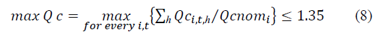 This representation avoids the obtaining of a solution with over-compensation, because Qtotal is limited to 1.2 times the maximum total reactive load of the circuit. Besides, the M parameter is the number of selected capacitor banks.