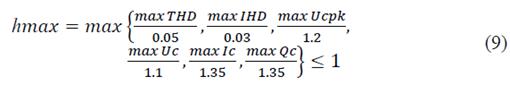 In order to simplify the evaluation of the harmonic related constraints, a single normalized index of maximum distortion is proposed such that: