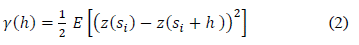 Where μ is the constant stationary function (global mean) and ε'(s) is the spatially correlated stochastic part of the variation, [31]. The analysis of point data were carried out based on the derivation and layout of the so-called semivariances obtained by [31-33] for the differences between the neighboring values (Eq.2):
