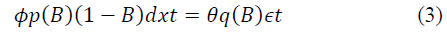 The methods were developed based on the assumption that time series 𝑧𝑡 follow a stochastic model in a known way, [25]. According to [33], a seasonal ARIMA (AutoRegressive, Integrated, Moving Average”), model is formed by including seasonal terms in the ARIMA (p, d, q) autoregressive integrated moving average model, defined as (Eq.3):
