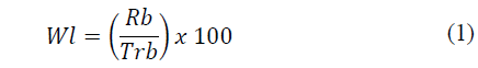 where: Wl = water loss (%), Rb = runoff blade (mm) and Trb = total rainfall blade (mm).