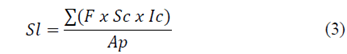 where: Sl = soil losses (kg m-2), F = flow (L s-1), Sc = sediment concentration (kg L-1), Ic = interval between collections (s) and Ap = area of the plot (m2).