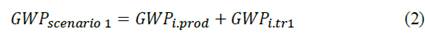 〖GWP〗_(i.tr2)= GWP For the transport of the amount of secondary material i required, from the recycling facility.