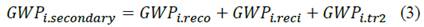 GWPi.reco= GWP for the selection of waste equivalent to the amount of material i required, for the manufacture of the product.GWPi.reci = GWP for recycling the amount of material i required.